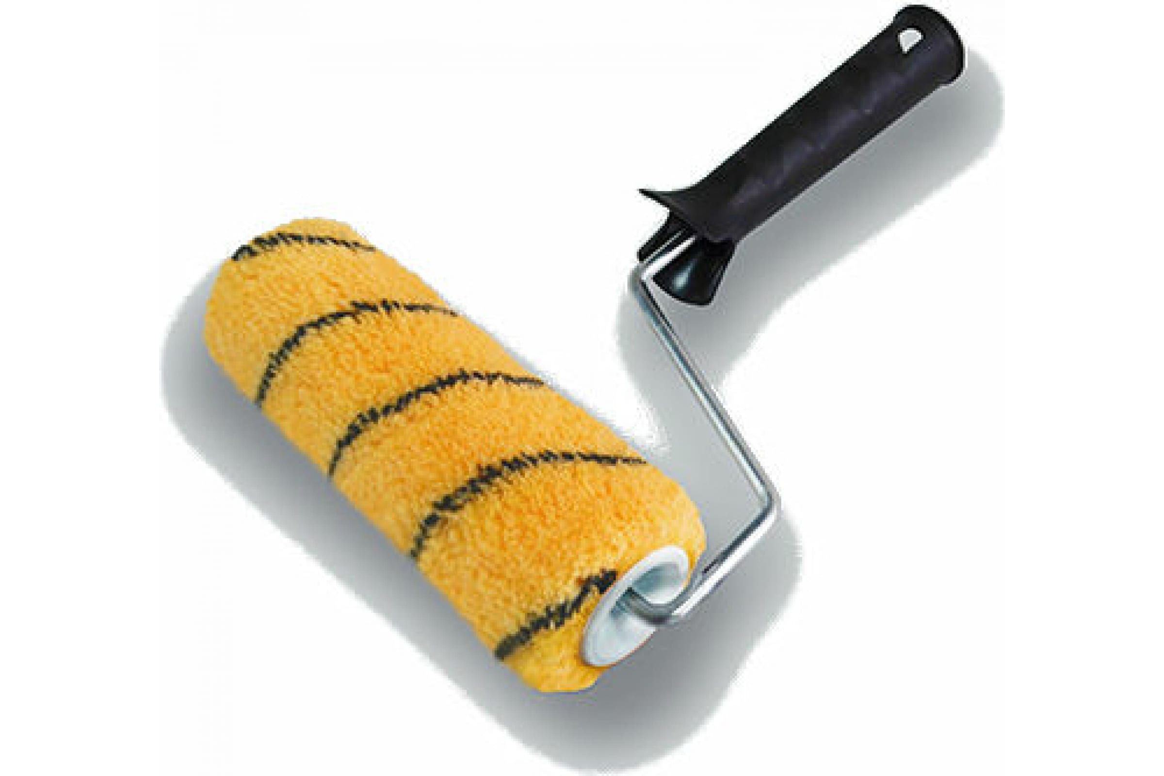 Валик состоит из пластмассового цилиндра, мягкой шубки, бугеля (изогнутого металлического стержня) и удобной пластиковой рукоятки.