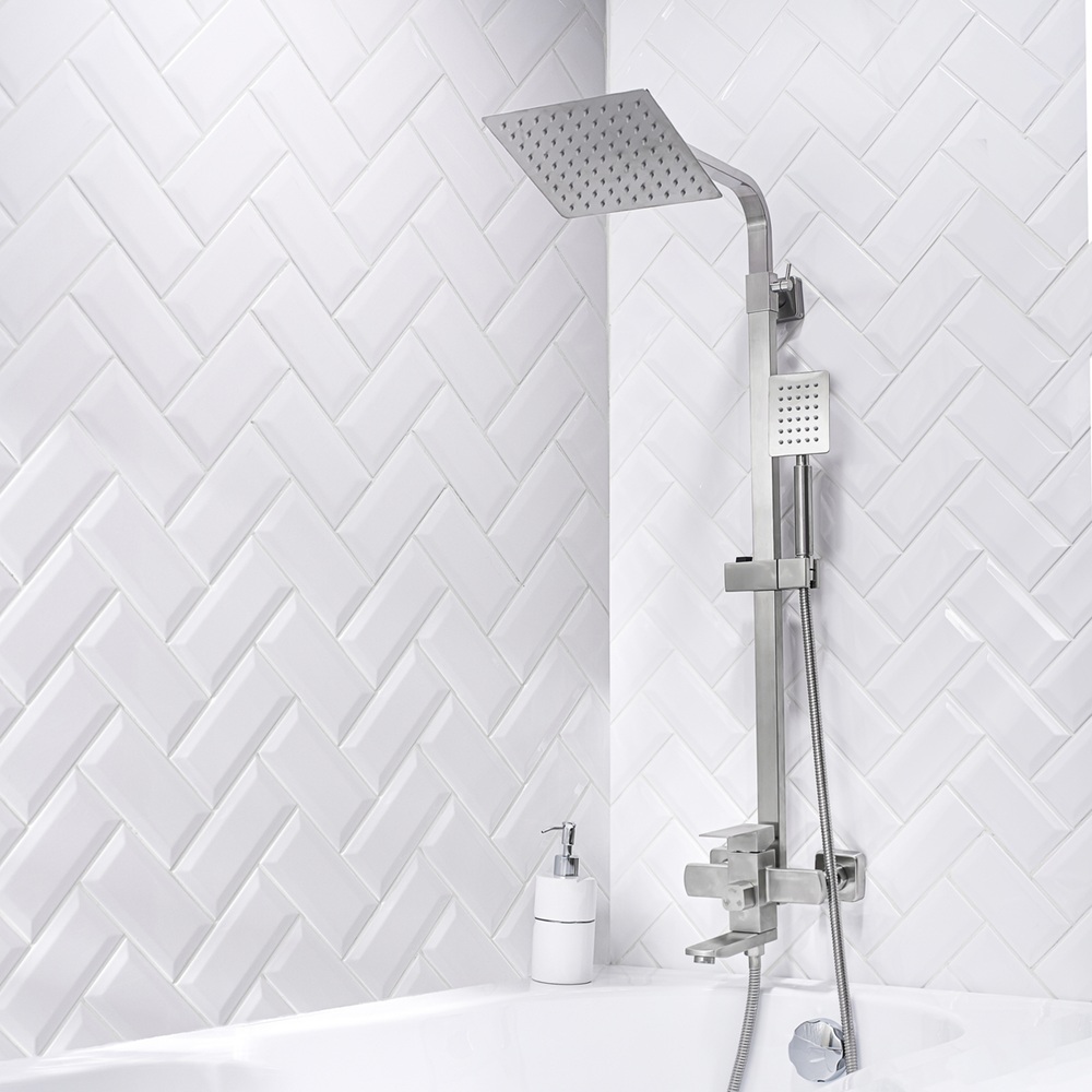 - Комплектация: смеситель, стойка для душа, тропическая лейка, лейка для душа, шланг, эксцентрики,отражатели,паспорт