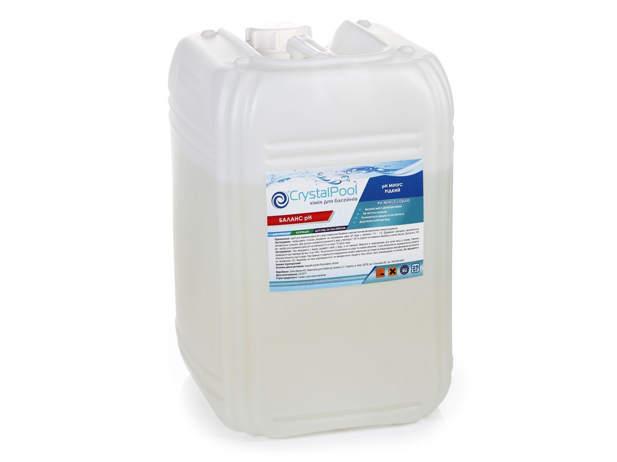 НАЗНАЧЕНИЕ:Понижает значение рН воды плавательного бассейна.Примечание: Допускается выпадение незначительного осадка